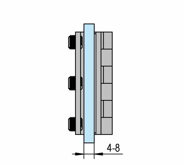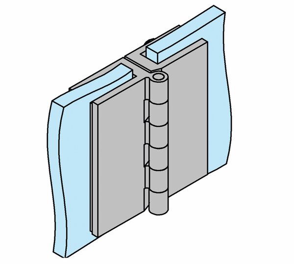 Cerniere per mobili in vetro-vetro Vitreasy per fissare facilmente ante in vetro a pannelli laterali in vetro, ad esempio, di vetrine interamente in vetro. Disponibili in varie dimensioni, con o senza lavorazione del vetro.