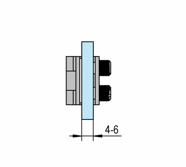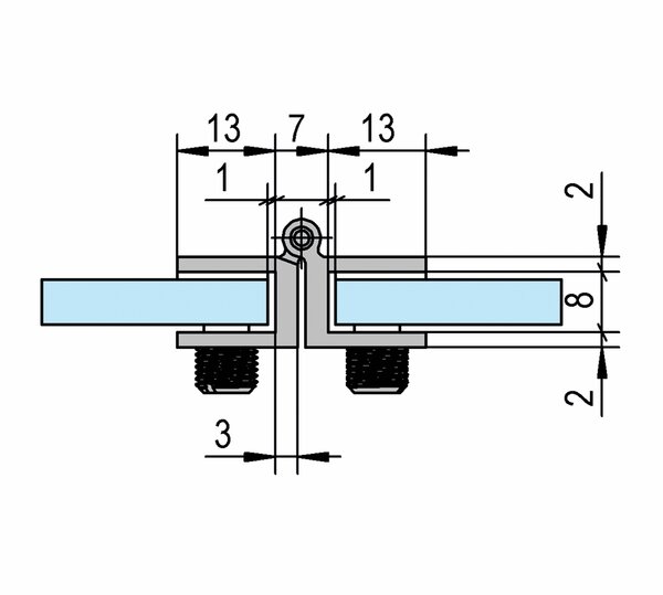 Cerniere per mobili in vetro-vetro Vitreasy per fissare facilmente ante in vetro a pannelli laterali in vetro, ad esempio, di vetrine interamente in vetro. Disponibili in varie dimensioni, con o senza lavorazione del vetro.
