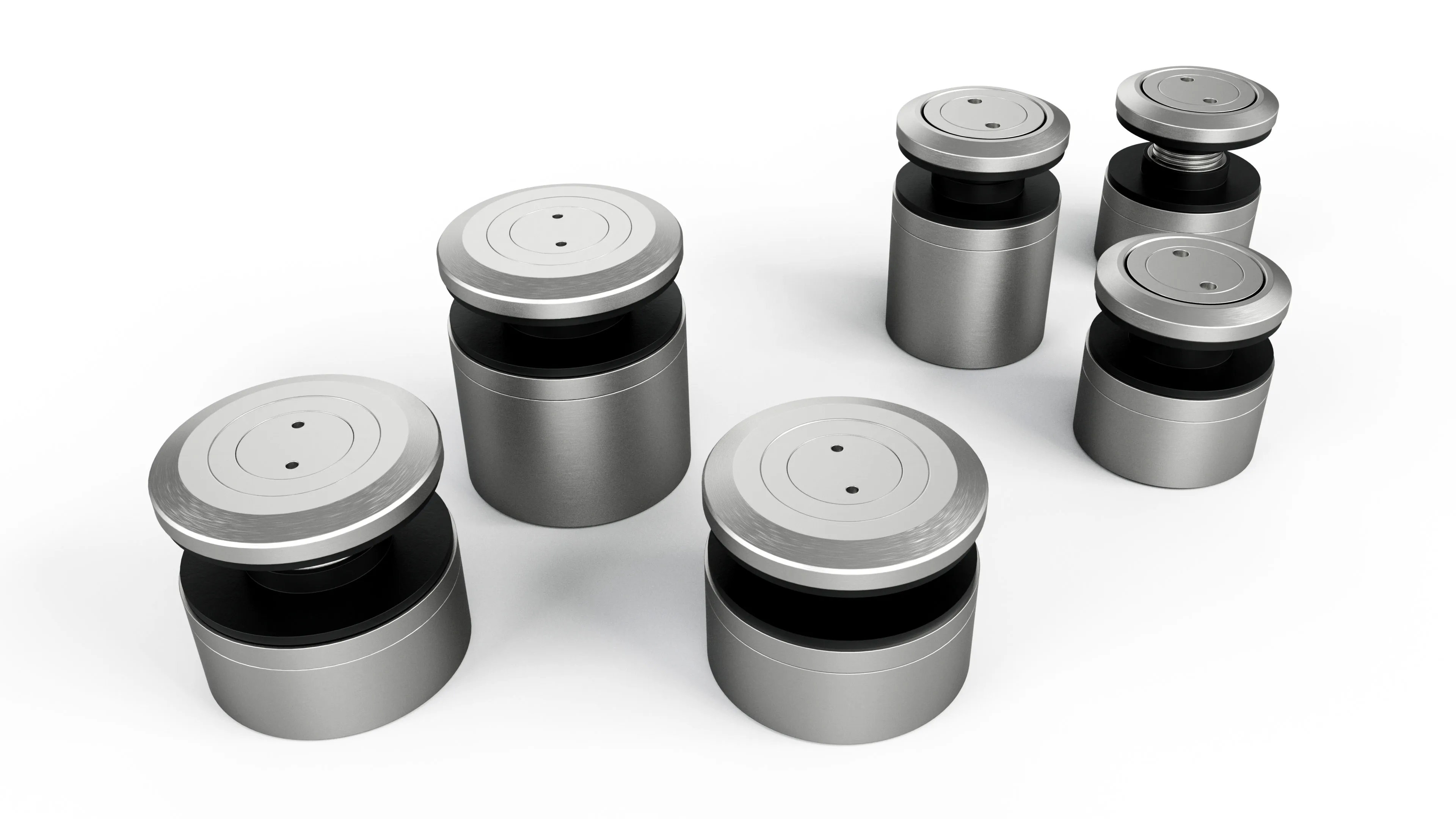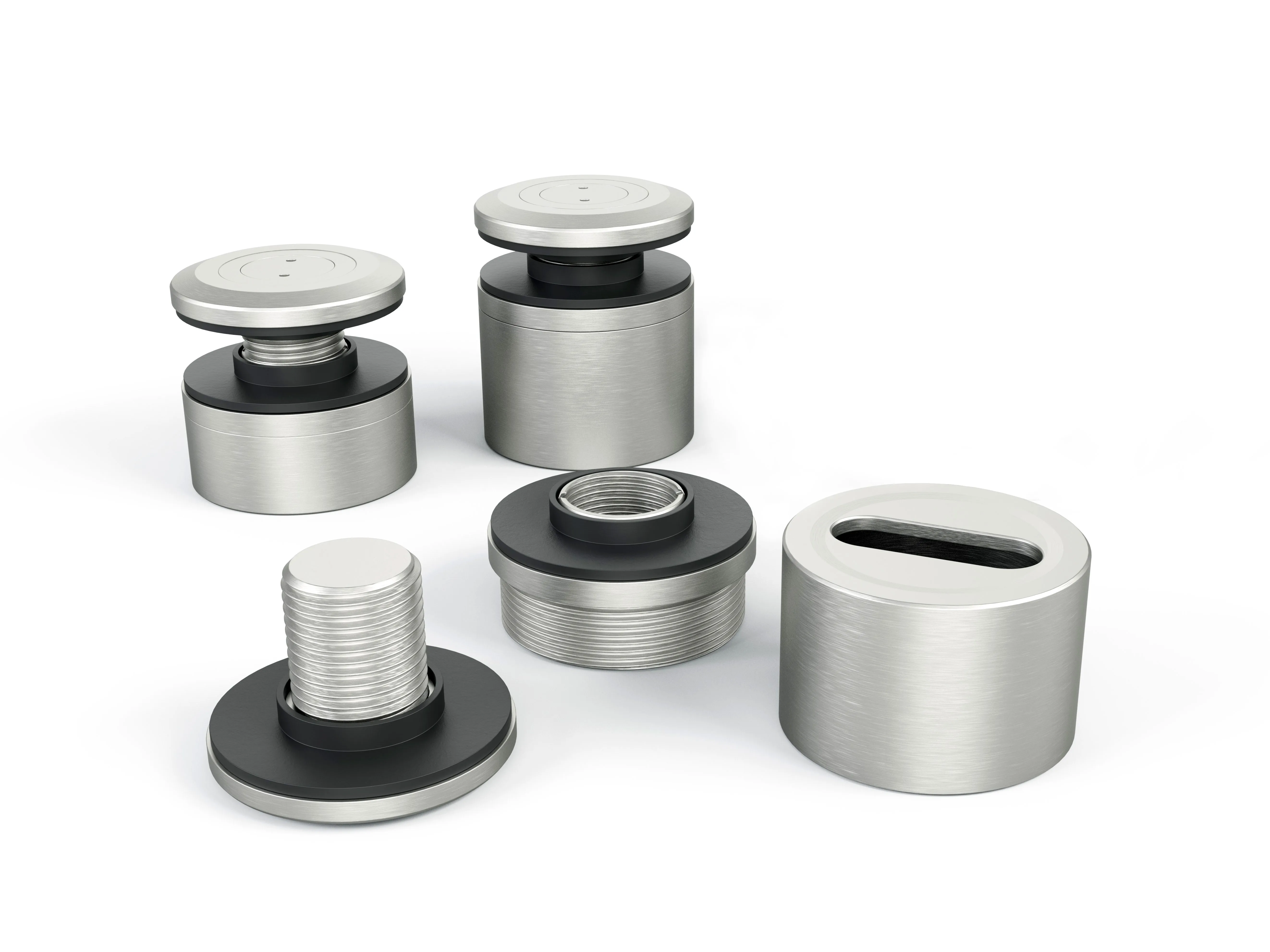 Per la maggior parte delle installazioni si utilizzano fissaggi puntuali in acciaio inox AISI 304 o V2A. Per sollecitazioni particolari in prossimità di acqua salata o clorata e nell'area dei prodotti chimici, si utilizza la lega più resistente AISI 316 o V4A. Entrambe le versioni sono disponibili con diametro di 40 e 50 mm e una distanza dalle pareti di 25-40 mm.