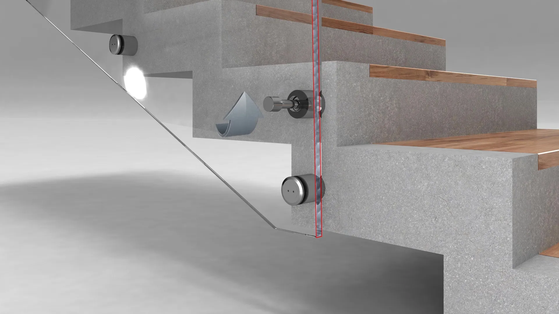 I fissaggi puntuali sono adatti al montaggio laterale dei pannelli di vetro. Questo li rende una soluzione popolare per le ringhiere delle scale e per le combinazioni di vetrate di scale e gallerie. Il design dei fissaggi puntuali crea un vantaggio decisivo durante l'installazione: La distanza tra il pannello di vetro e la pedata della scala è facilmente variabile e può essere adattata alle condizioni.