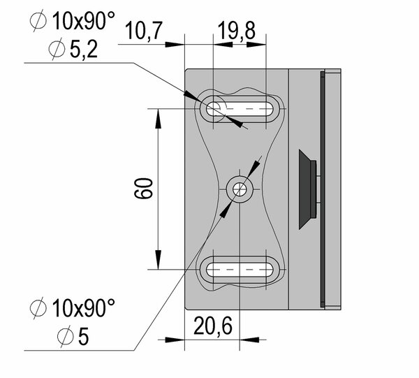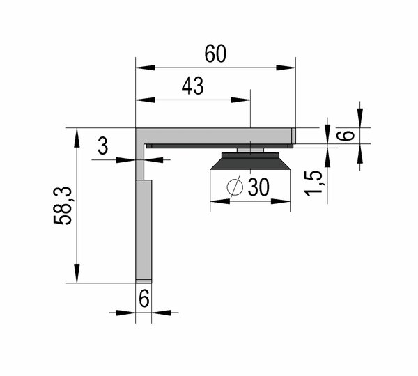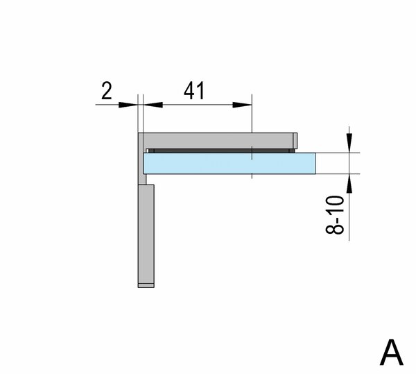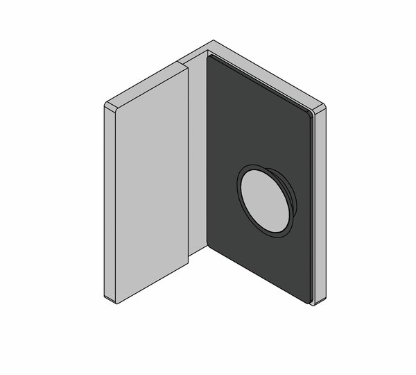 Madrid FM angle connector glass-wall 90° flush, screw-on plate inside for connecting a wall with a fixed side panel. All that is required are simple glazing bead drill holes and a small edge cut-out.