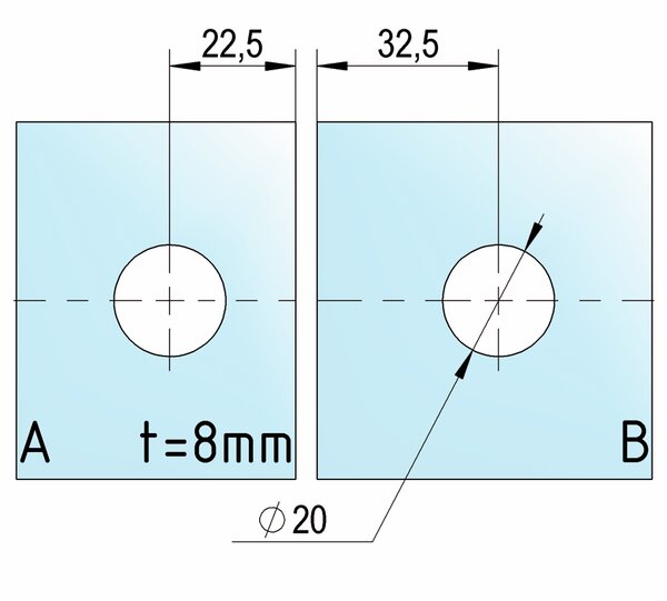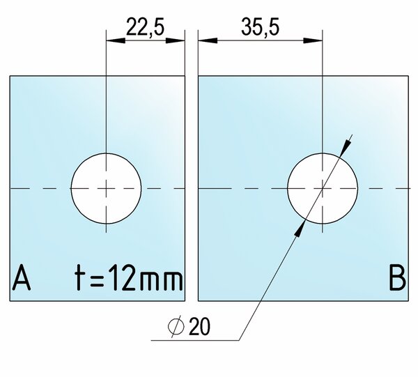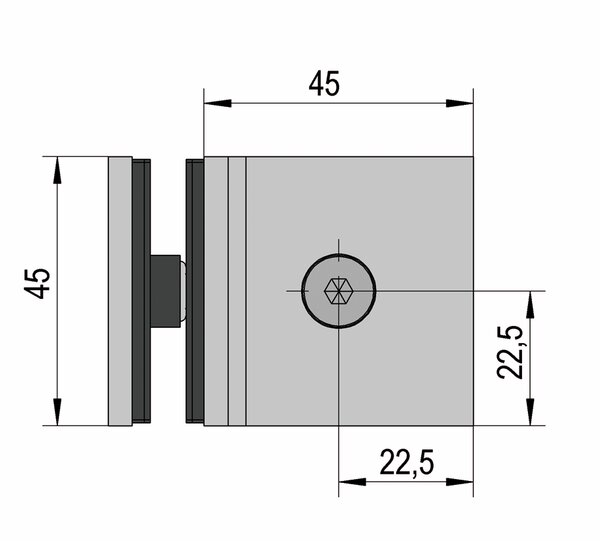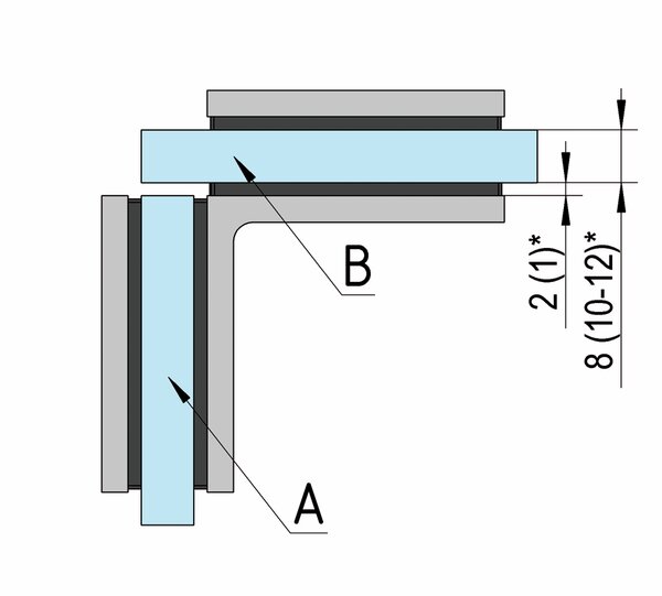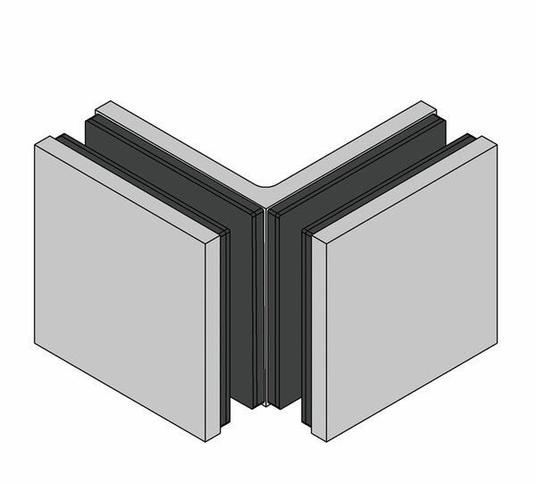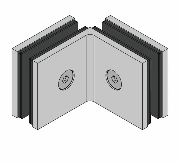 Bilbao Select 90° glass-glass angle connector for connecting two glass side panels at right angles to each other. Only simple glass holes in the glass panes are required.