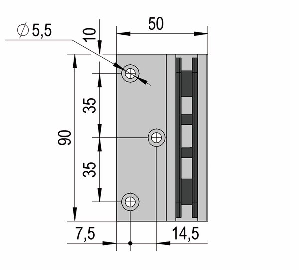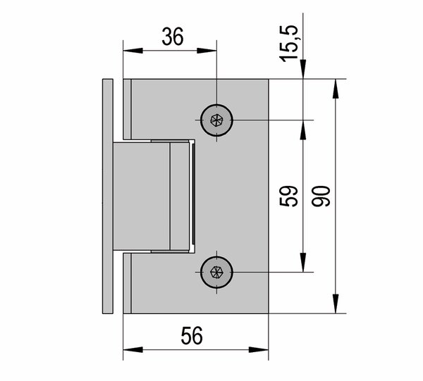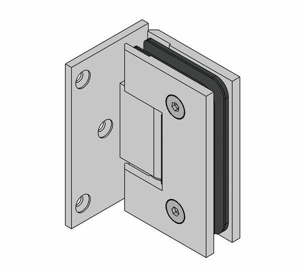 The Bilbao glass-wall 90° swing shower door hinge with wall connection on one side has a load-bearing capacity of 36 kg. Doors up to 0.9 x 2 m can be realised. The hinge enables a glass door to be mounted on a wall, for example for classic recess or 90° corner showers.