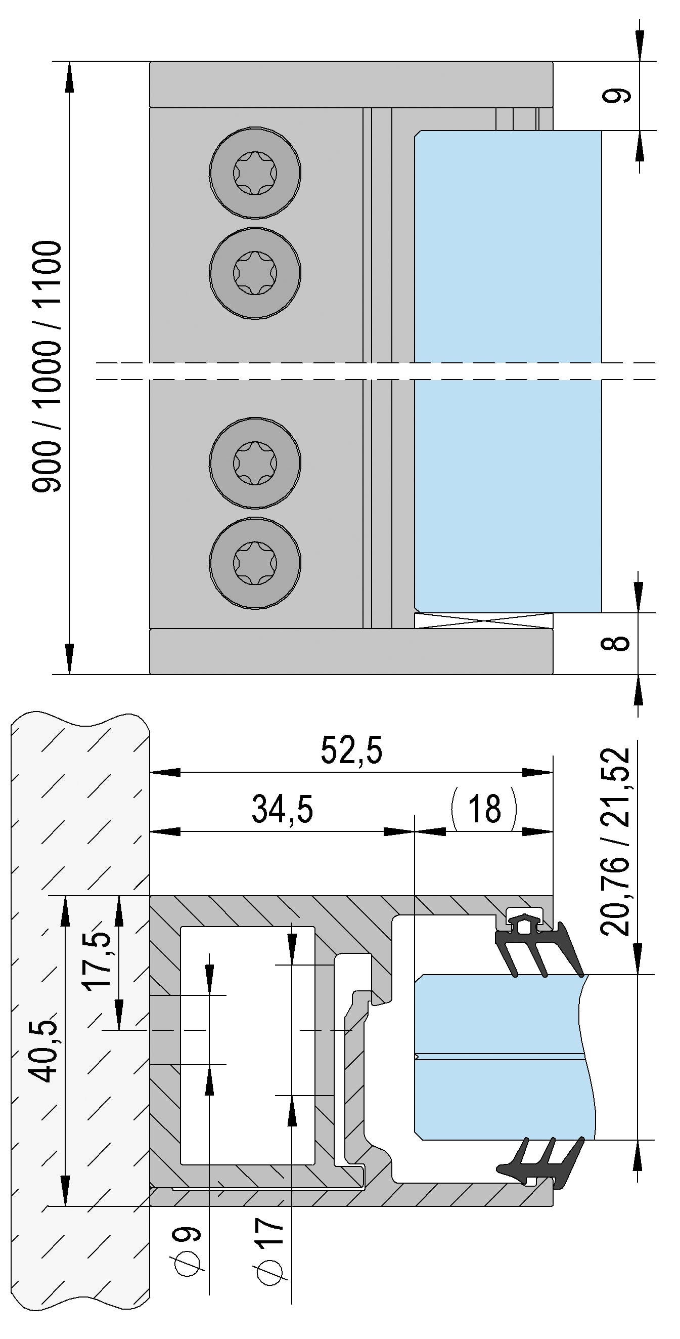 Not suitable for use in salty or chlorinated atmospheres, e.g. near the coast, brine baths or on buildings with direct exposure to road salt. On request, we offer specially pre-anodised profile variants in the colour of your choice for the above-mentioned locations. Talk to us!