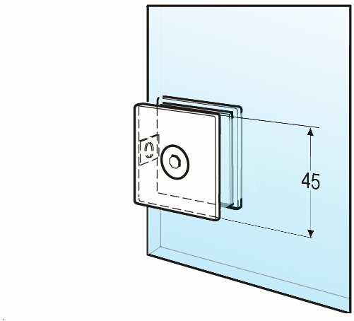 Granada connector/clamping bracket 90° glass-wall for connecting a fixed glass side panel to a wall.
