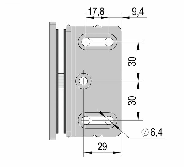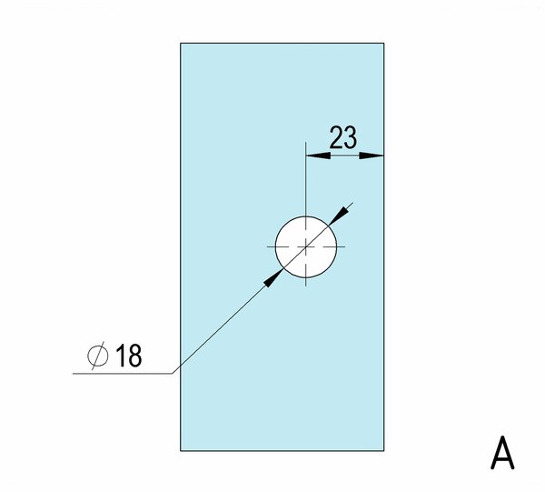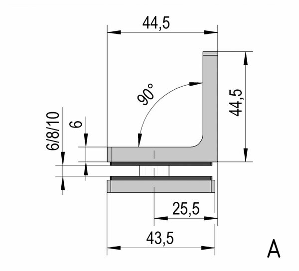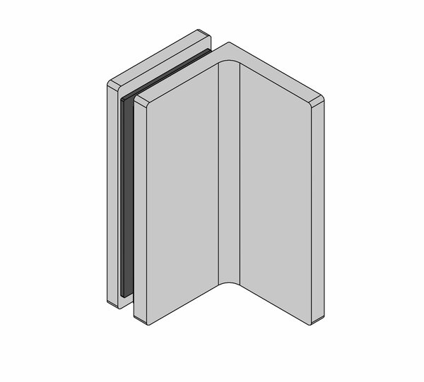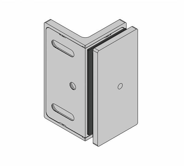 Madrid angle connector 90° glass-wall, for connecting a wall with a fixed side panel. Only inexpensive glass drill holes are required.