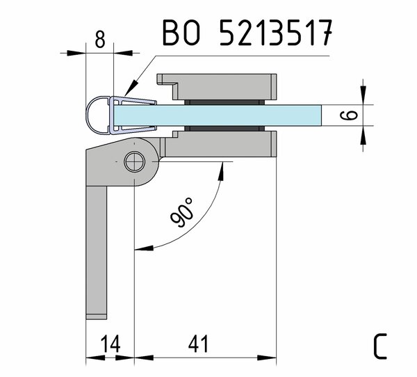 All screw fittings on the strap are concealed so that nothing detracts from the high-quality look. The design is classically angular and therefore timeless. The sealing profiles can be guided through the hinge. No glass cut-outs are required for installation, only glass drill holes.