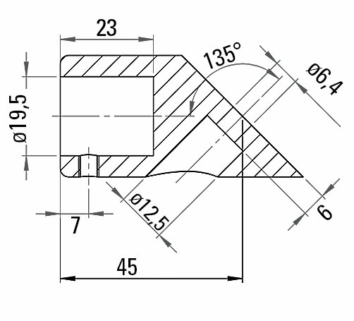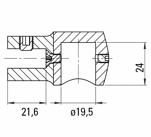 Reinforcement bar set Round 19 is used to connect a fixed glass side panel to a wall. The glass connector is clamped onto the upper glass edge and is freely adjustable in angle. The 45° wall connection is rigid.