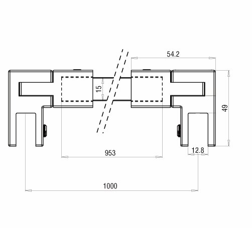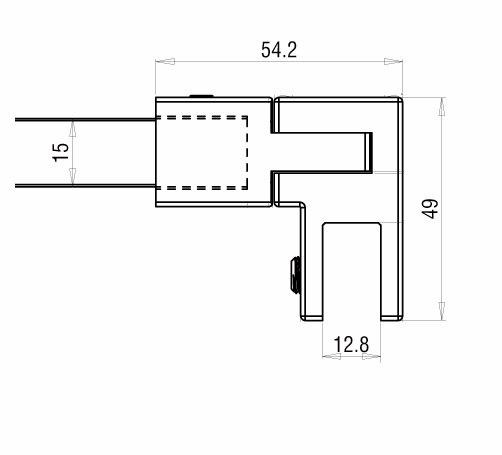 Reinforcement bar set Square 15 is used to connect two fixed glass side panels together. The glass connectors are clamped onto the upper glass edge and are freely adjustable in angle.