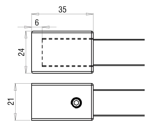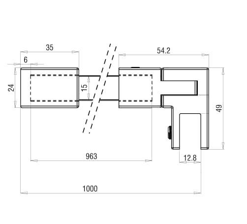 Reinforcement bar set Square 15 is used to connect a fixed glass side panel to a wall. The glass connector is clamped onto the upper glass edge and is freely adjustable in angle. The 90° wall connector is rigid.