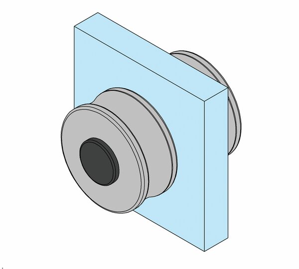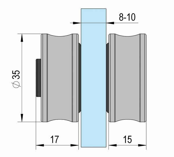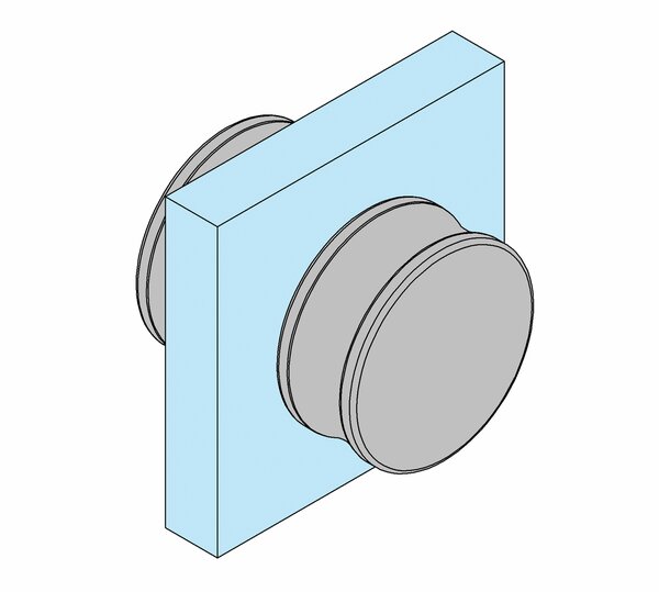 The shower door knob has a stop buffer on one side and is available in different handle lengths for the outside. It is particularly suitable for use in folding glass doors, as the bumpers reliably prevent glass-to-metal contact.