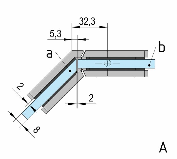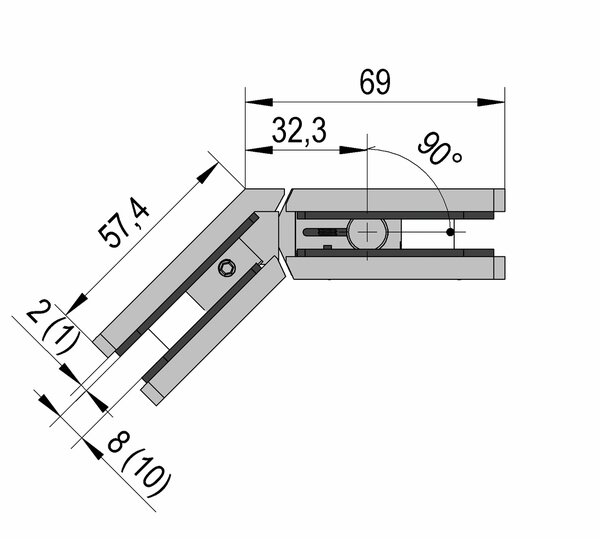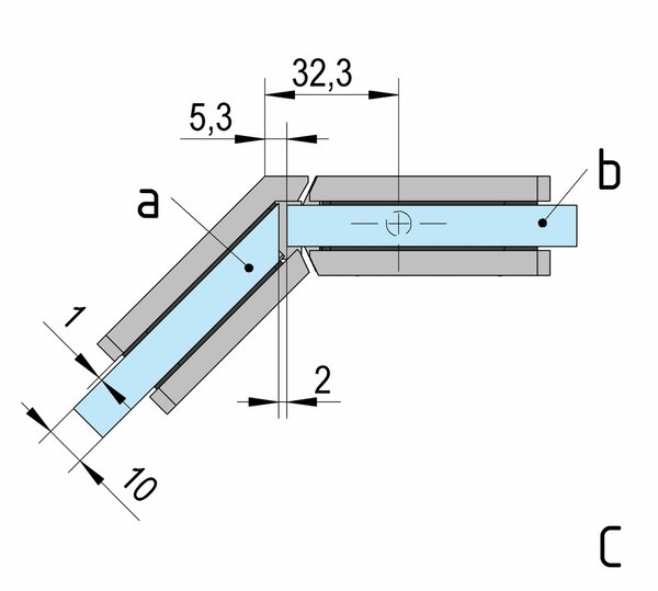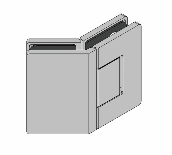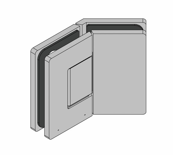 The Santos Glass-Glass 135° swing shower door hinge has a load capacity of 50 kg. Doors up to a maximum size of 1 x 2 m can be realised. The hinge is designed, for example, for modern and space-saving pentagonal showers. The glass processing on the side panel requires a simple glass cut-out.