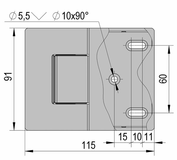 Shower door hinge Santos, glass-wall 180°