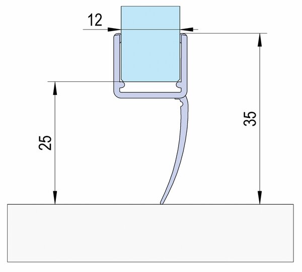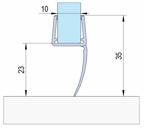 Shower door seals with a single sealing lip are suitable for both the hinge side and the underside and are used for both single-action and swing doors. The seal is simply slipped onto the edge of the glass.