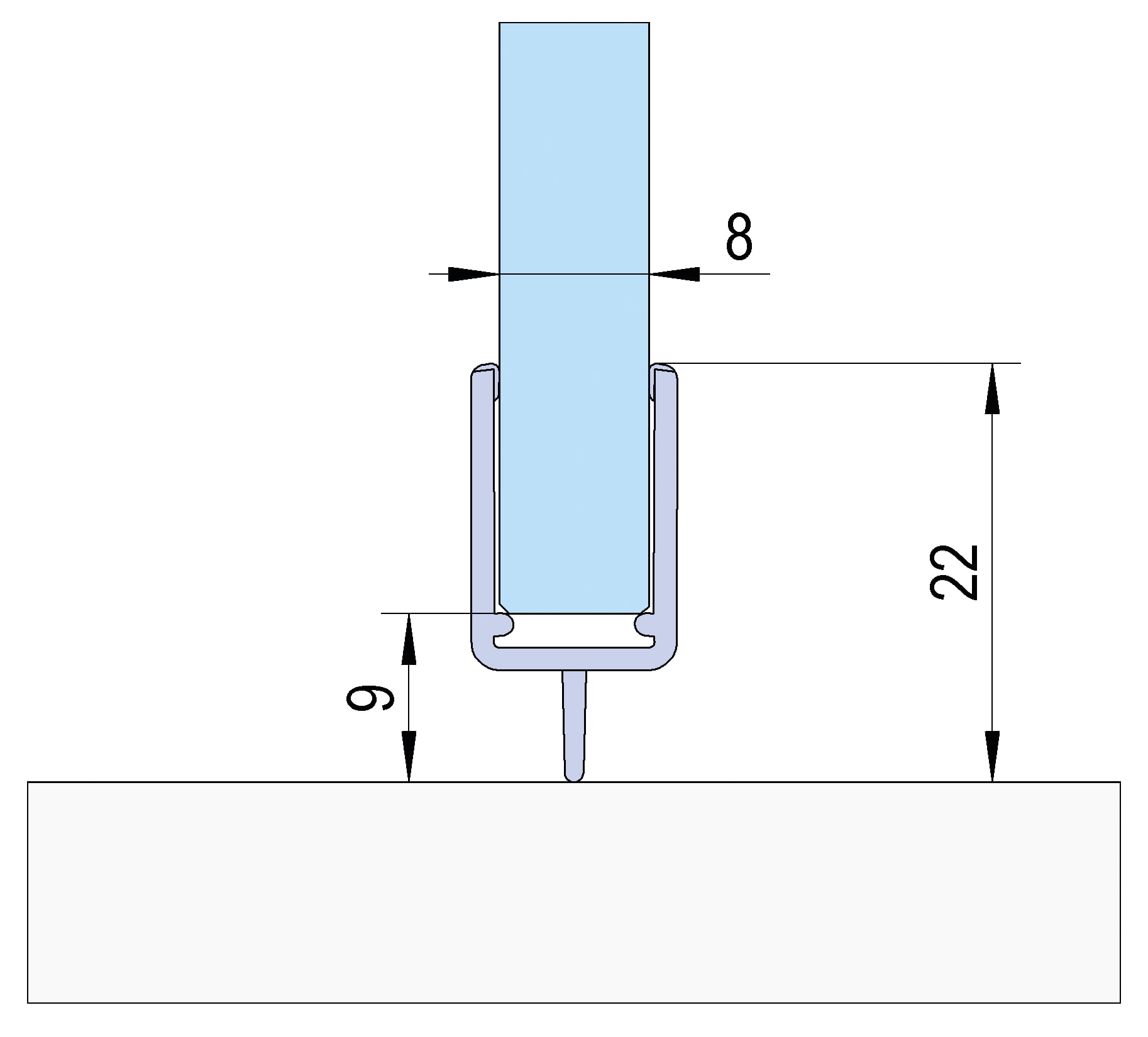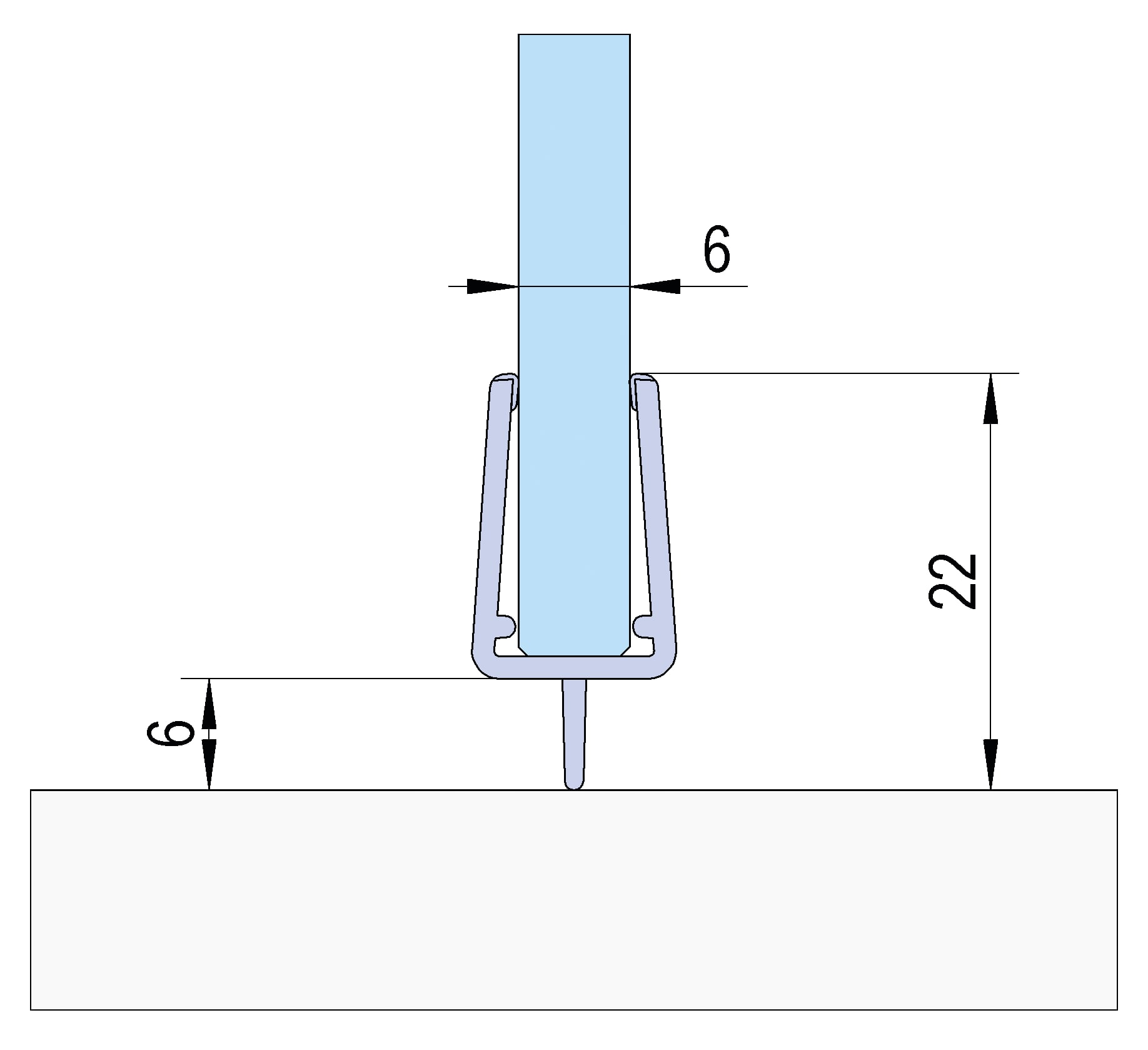 Shower door seals with a lower sealing lip are suitable for both the hinge side and the underside and are used for both single-action and double-action doors. The seal is simply slipped onto the edge of the glass.