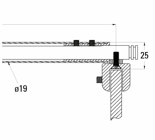 The telescopic Round 19 reinforcement bar set is used to connect a fixed glass side panel to a wall. There is no need to use a saw, as the reinforcement bar is freely adjustable in a wide range of lengths.