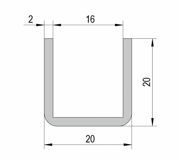 U-profile 20 x 20 mm, stainless steel