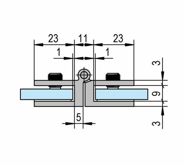 Vitreasy glass-glass furniture hinges for easy attachment of glass doors to glass side panels of, for example, all-glass display cabinets. Available in various sizes and with and without glass processing.