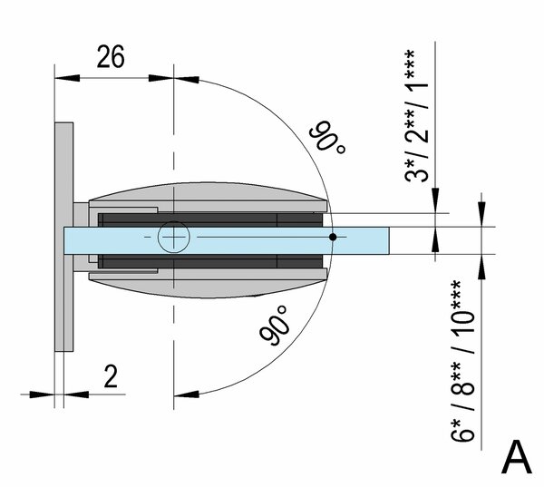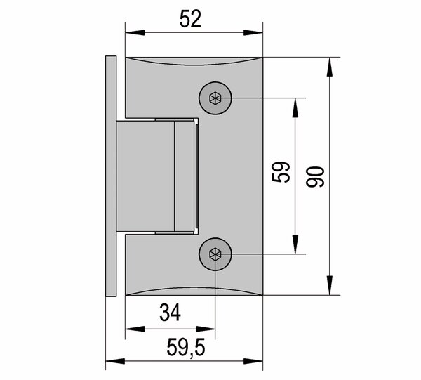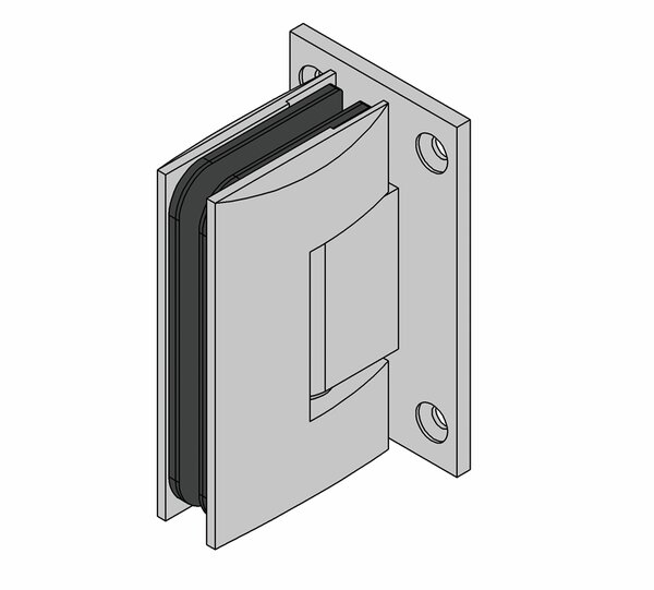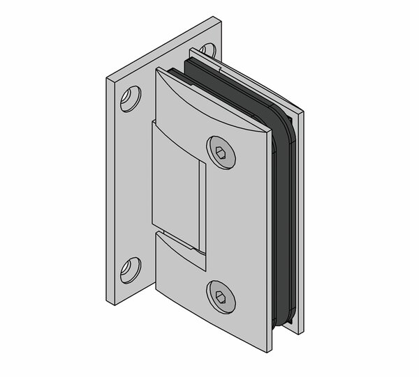 The Art glass-wall 90° swing shower door hinge has a load-bearing capacity of 35 kg. Doors up to max. 0.75 x 2 m can be realised. The hinge with wall connection on both sides enables the installation of a glass door on one wall, for example for classic recess showers or 90° corner showers.