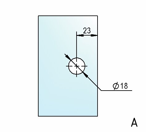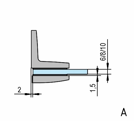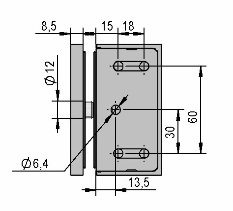 Avila angle connector 90° glass-wall for connecting a fixed glass side panel to a wall. Only simple glass holes in the glass panes are required.