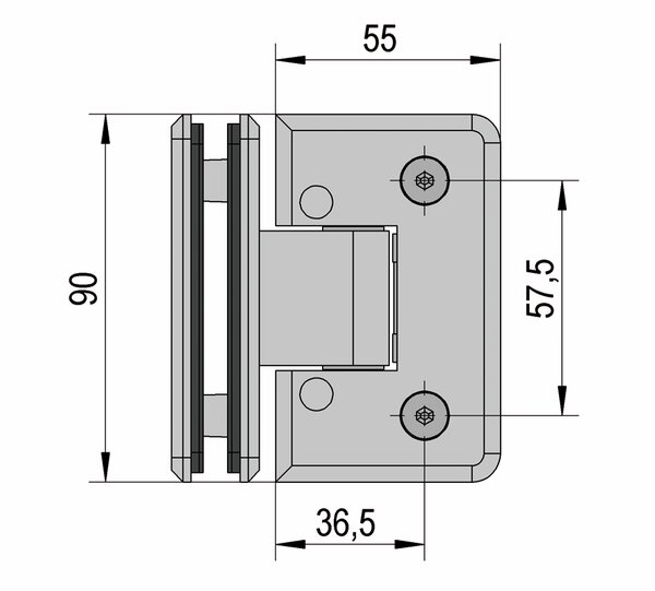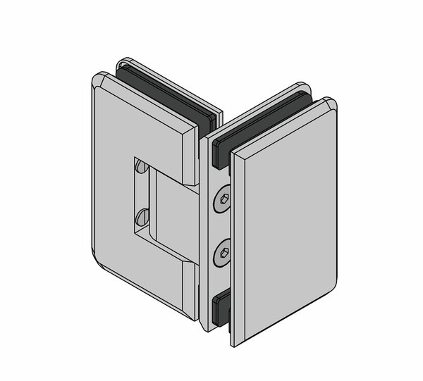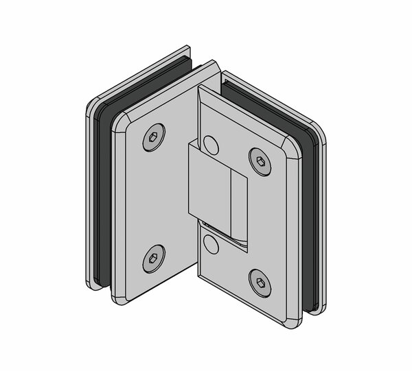 The Barcelona Select glass-glass 90° swing shower door hinge has a load-bearing capacity of 40 kg. Doors up to max. 1 x 2 m can be achieved. The hinge for 90° glass-glass installation is designed for attaching a door to a fixed glass side panel.