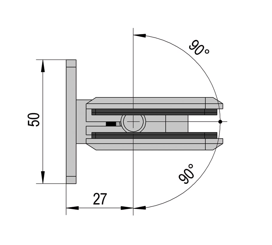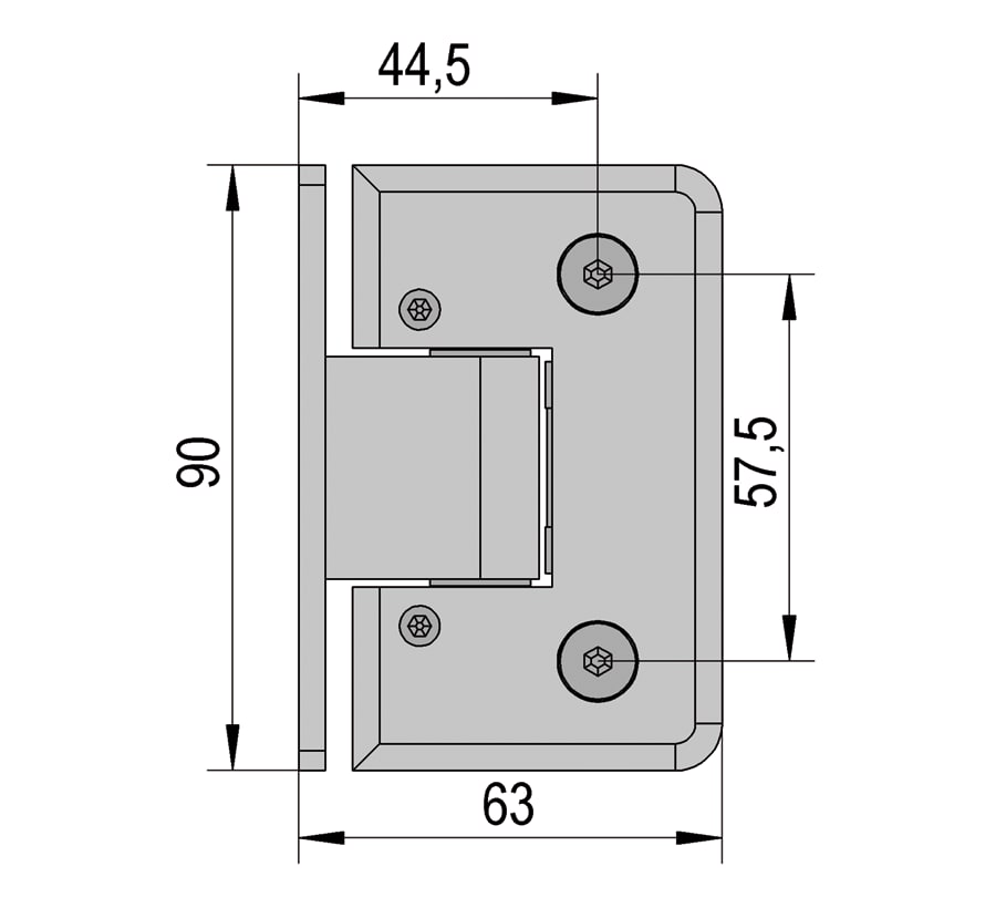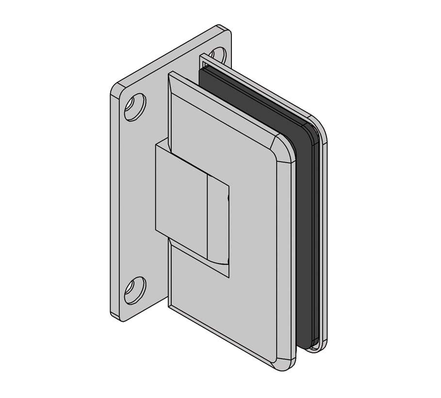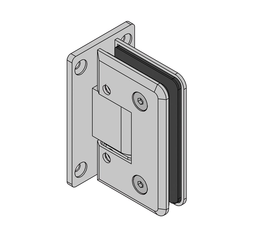 The Barcelona Select glass-wall 90° swing shower door hinge has a load-bearing capacity of 40 kg. Doors up to 1 x 2 m can be realised. The 90° glass-wall assembly with glass connection on both sides enables a glass door to be mounted on a wall.