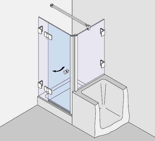 Due to the combination of the bath attachment profile and the magnetic strip support, the magnetic seal runs through from top to bottom in one piece. This allows the shower door to be kept closed.