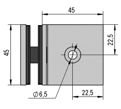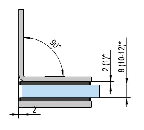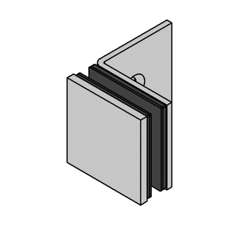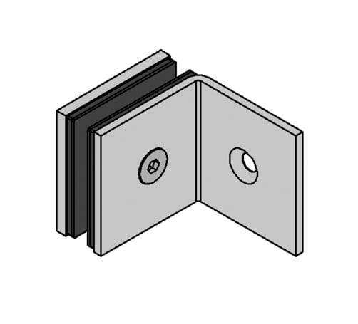 Bilbao Select 90° glass-wall angle connector for connecting a fixed glass side panel to a wall. Only simple glass holes in the glass panes are required.