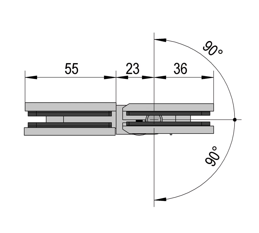 The Bilbao Select glass-glass 180° swing shower door hinge has a load-bearing capacity of 40 kg. Doors up to max. 1 x 2 m can be realised. The hinge for 180° glass-glass installation has been developed for modern, large glass shower rooms.