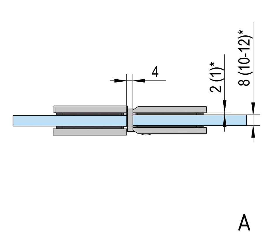 Bilbao Select 180° glass-glass swing shower door hardware for aligning a door on a fixed glass side panel
