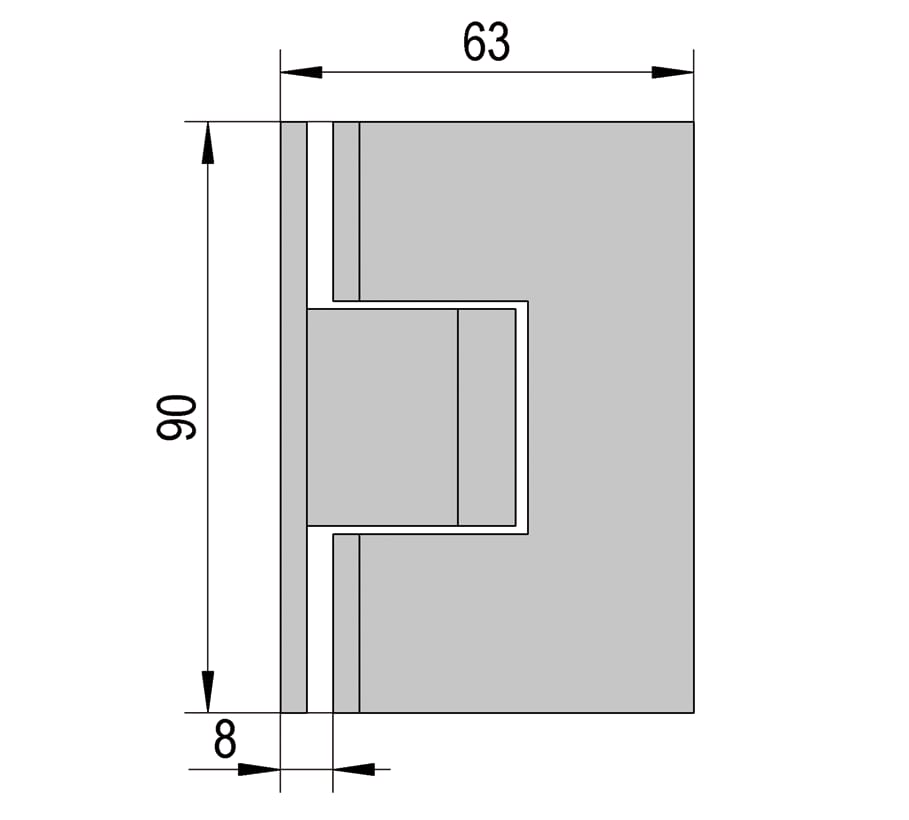 Bilbao shower door hinge, glass-wall 90°