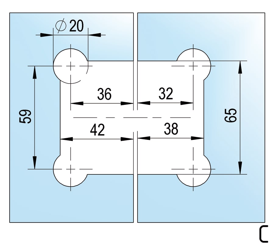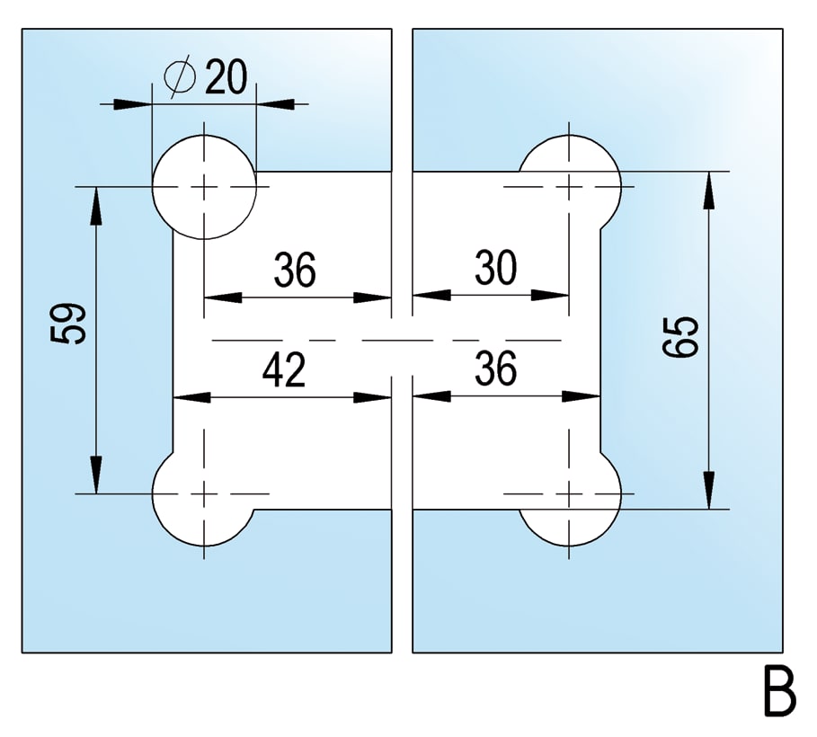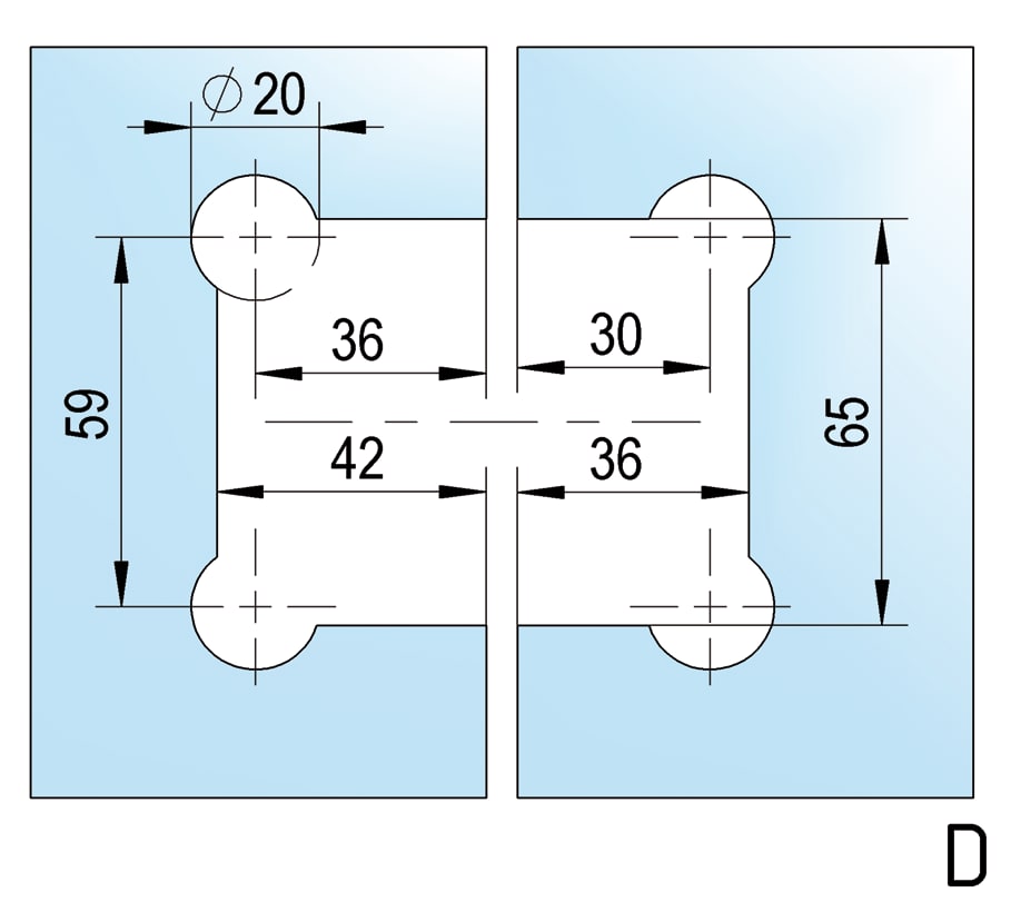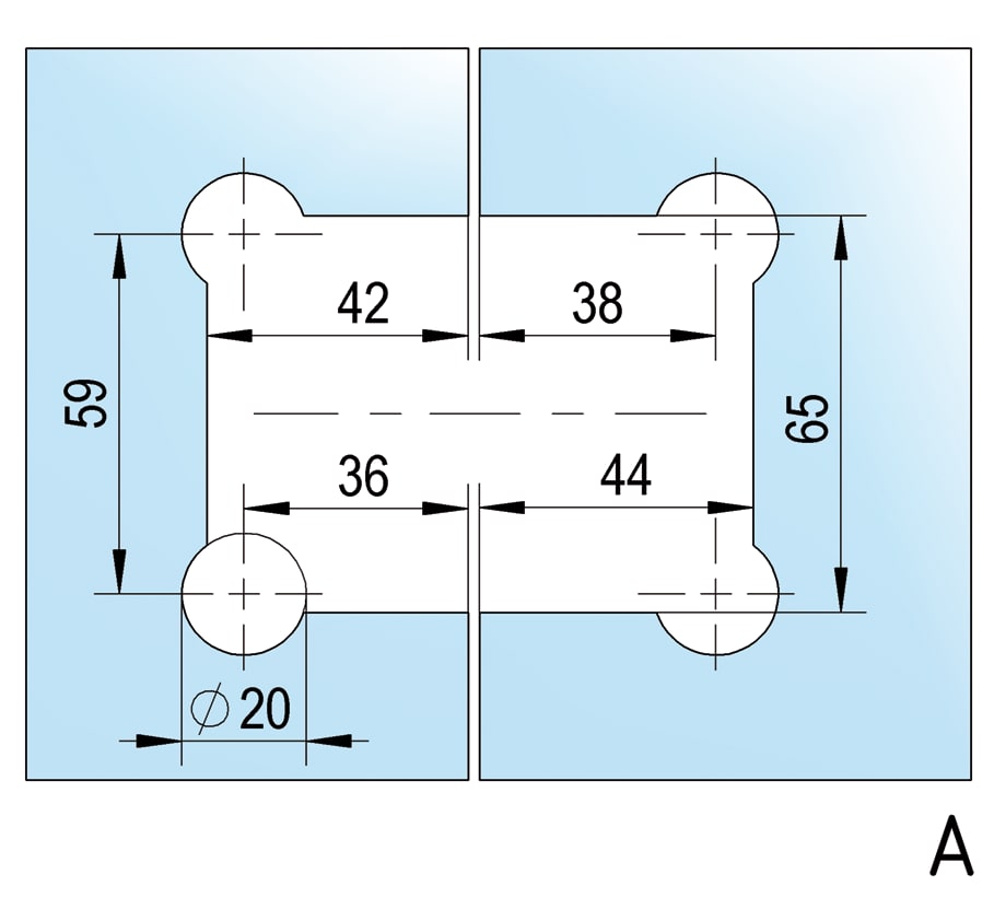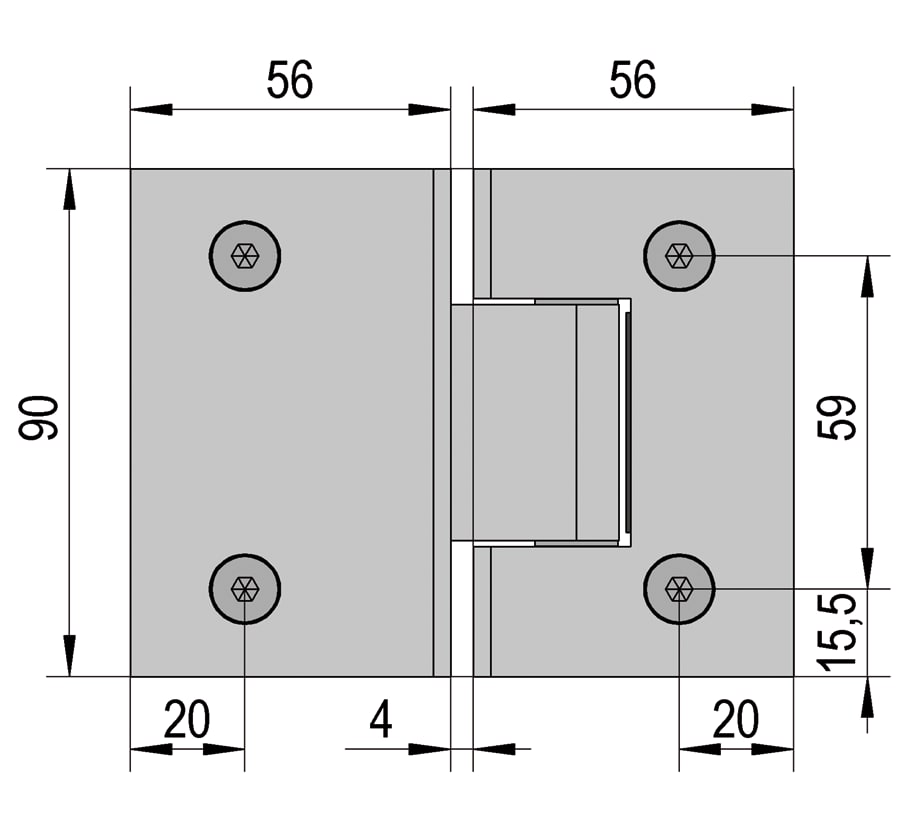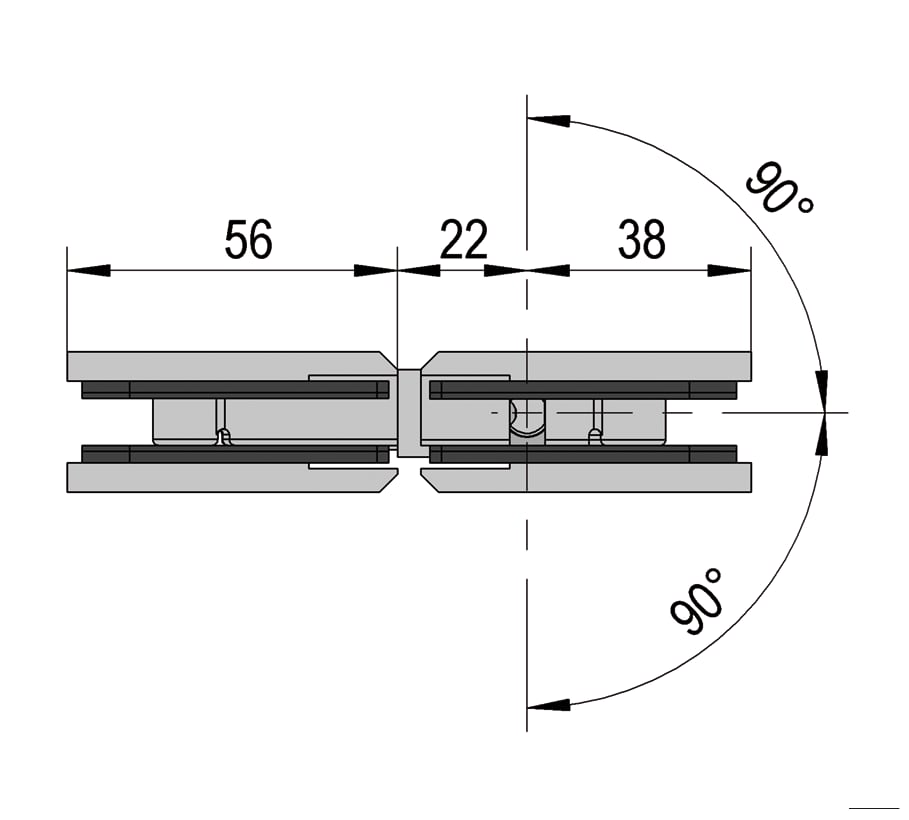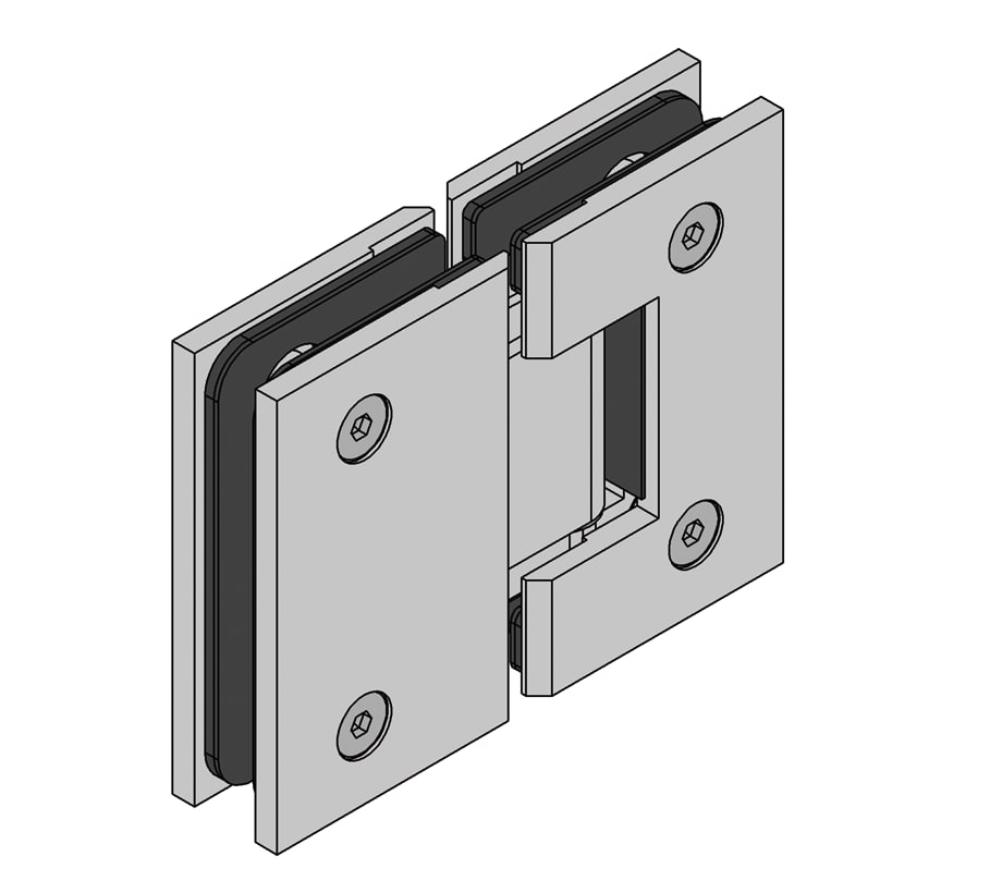 The Bilbao glass-glass 180° swing shower door hinge has a load capacity of 36 kg. Doors up to 0.9 x 2 m can be achieved. The hinge for 180° glass-glass installation has been developed for modern, large glass shower rooms.