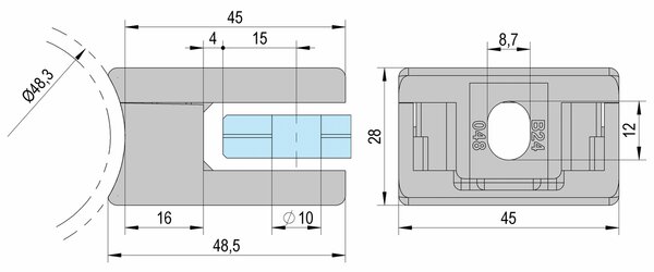 Powered by Smartsupp Clamp fixing square 45 x 45 mm | Chrome-plated | Zinc die casting | For round tube Ø 48.3 mm | BO8724122