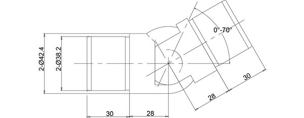 This adjustable corner connector enables a clean connection of the ø 42.4 mm round handrail at an angle of 0–70°.