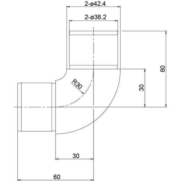 This curved corner connector enables a clean 90° connection of the round 42.4 mm handrail.