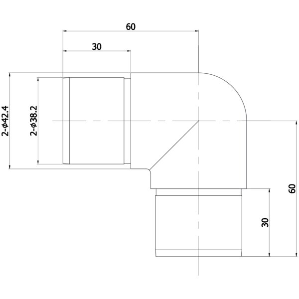 This rounded corner connector enables a clean 90° connection of the round 42.4 mm handrail.