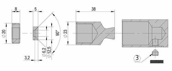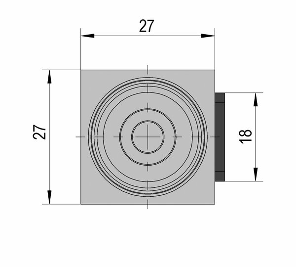 Door stops for retrofitting 90° glass wall are screwed to the wall. They prevent the door from being pushed over in one direction. The end position of the door can be finely adjusted using the integrated eccentric adjustment.