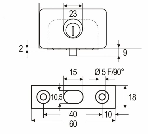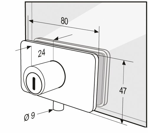 The glass door deadbolt lock with matching striking plate is designed to be screwed to the lower or upper glass edge of single-leaf doors. It is pushed into a glass cut-out and fixed to the glass by means of two clamping screws