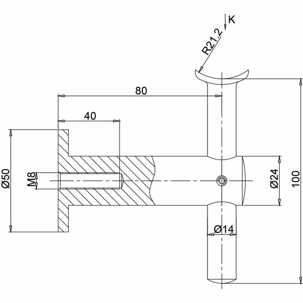 This handrail support bracket enables a round handrail tube to be attached to a wall. The height of the handrail is adjustable.