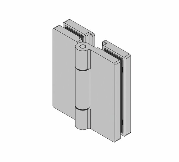 The Madrid rebate shower door hinge has a load capacity of 45 kg. Doors up to max. 1 x 2.25 m can be realised. With 180° glass-to-glass mounting, the hinge is designed for 180° folding glass walls, among other things.