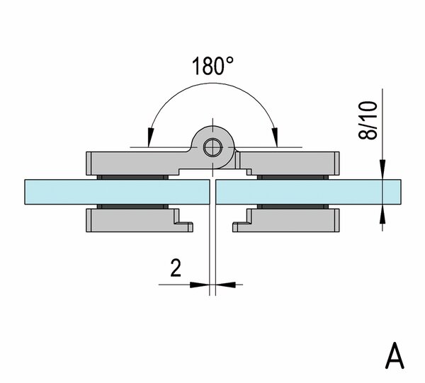 All screw fittings on the strap are concealed so that nothing detracts from the high-quality look. The design is classically angular and therefore timeless. The sealing profiles can be guided through the hinge. No glass cut-outs are required for installation, only glass drill holes. You can find suitable measurement sheets for your installation situation here.