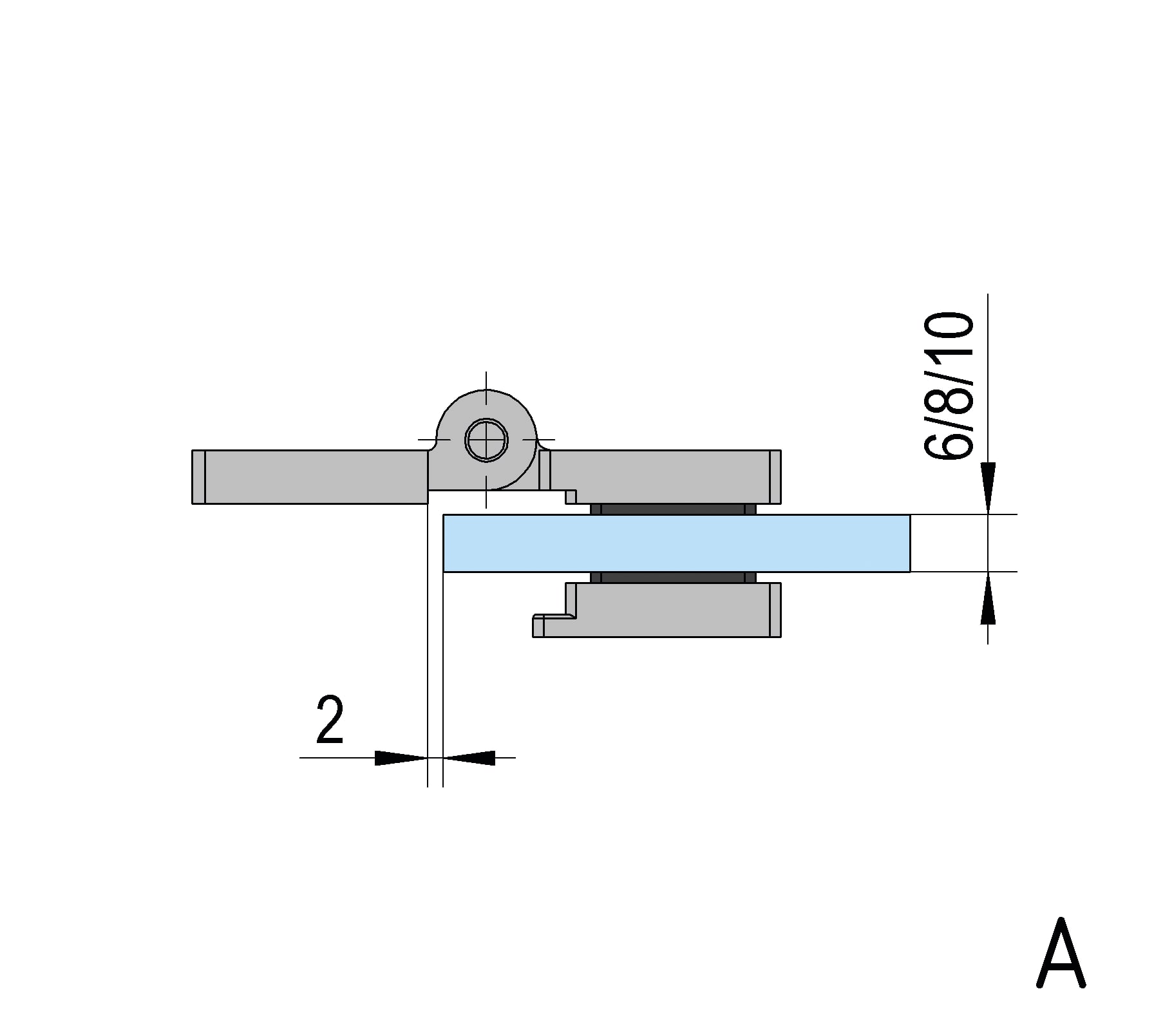 All screw fittings on the strap are concealed so that nothing detracts from the high-quality look. The design is classically angular and therefore timeless. The sealing profiles can be guided through the hinge. No glass cut-outs are required for installation, only glass drill holes.