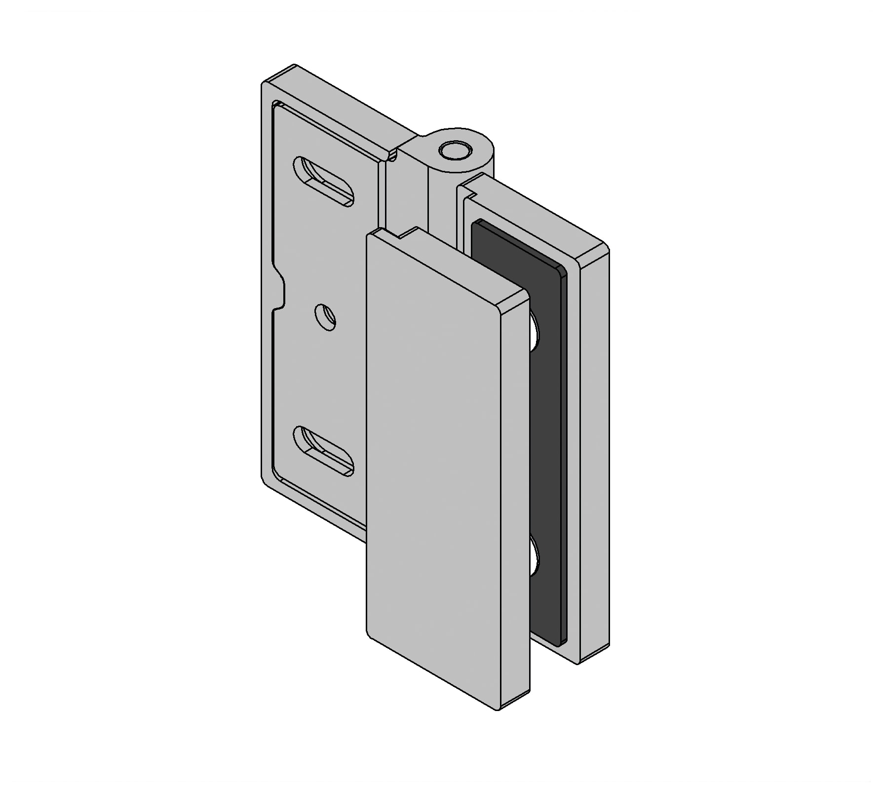 The Madrid rebate shower door hinge has a load capacity of 45 kg. Doors up to max. 1 x 2.25 m can be achieved. The hinge for 180° glass-wall installation is designed so that the inner walls of the shower remain free of fittings.