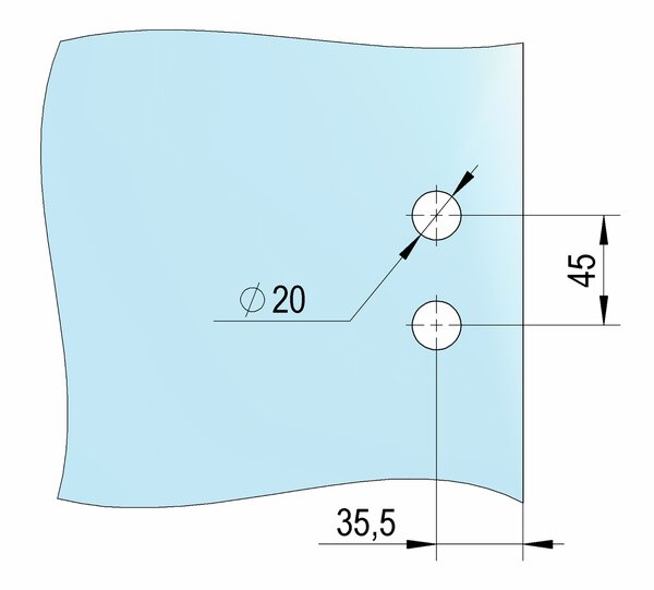 When using the door hinges with laminated safety glass, we recommend using a pressure-neutral film and additionally gluing the door hinges to the glass.