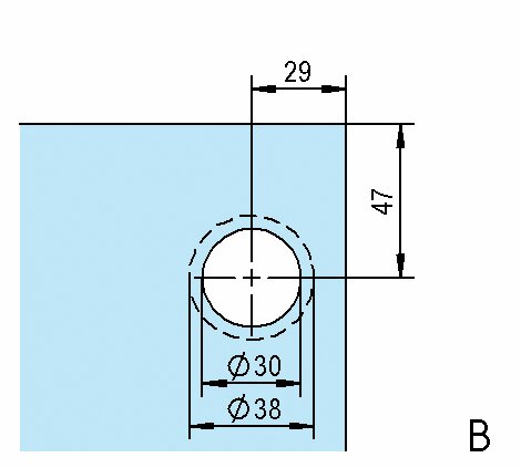 For a flush finish with the fitting a 16 mm deduction is included in the glass cut-out. To insert the seal BO 5213494, the glass cut-out must be adapted.