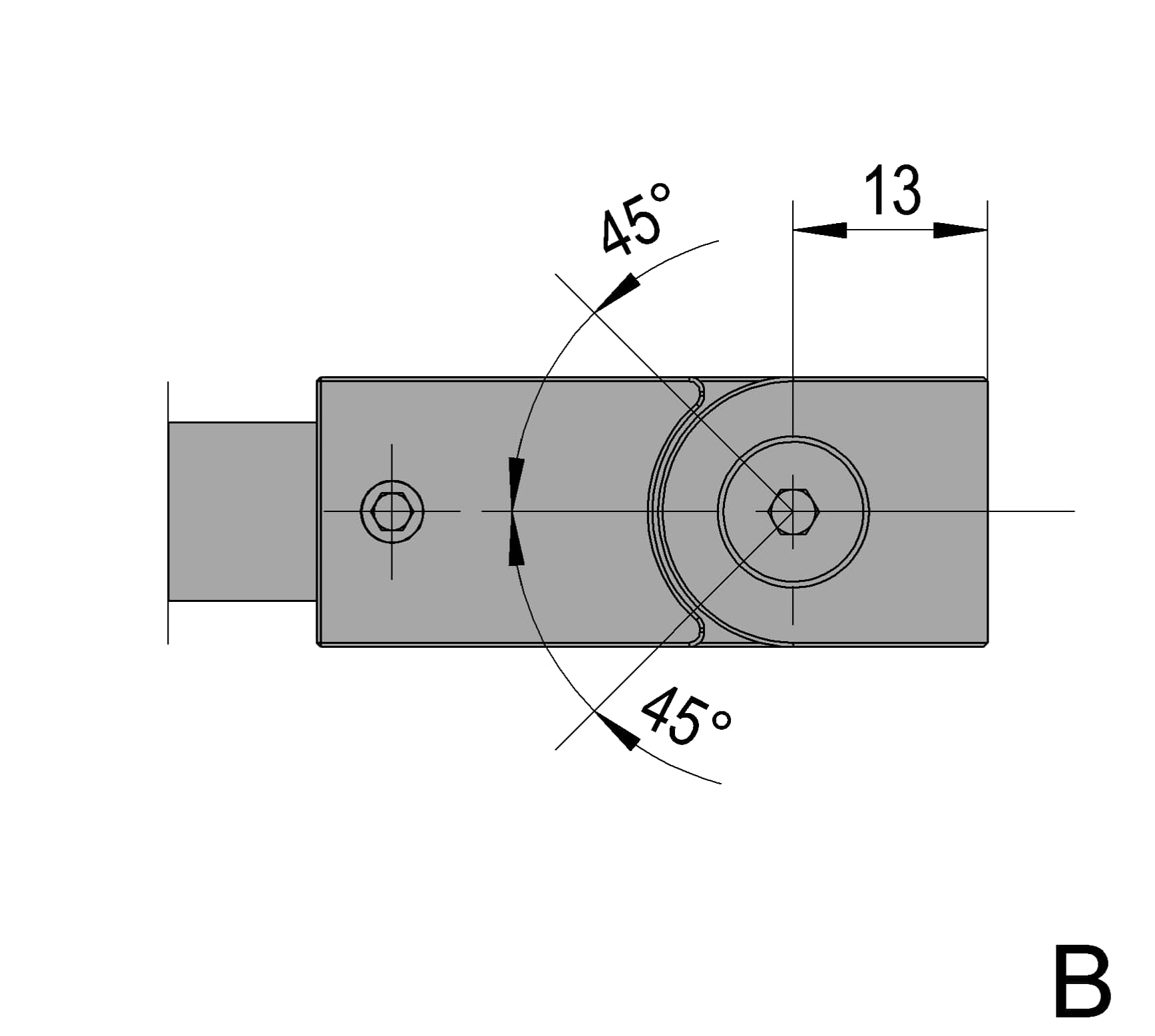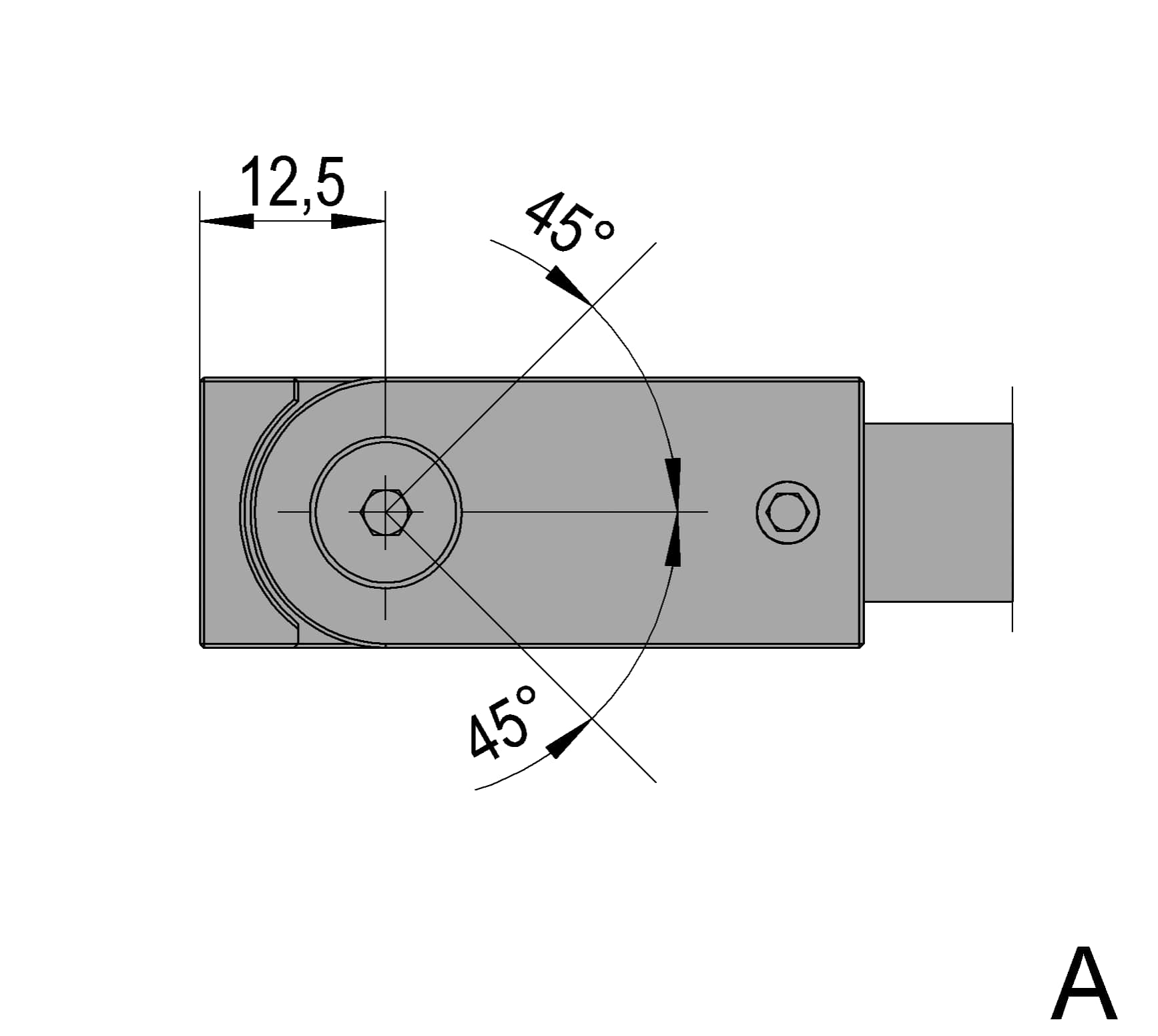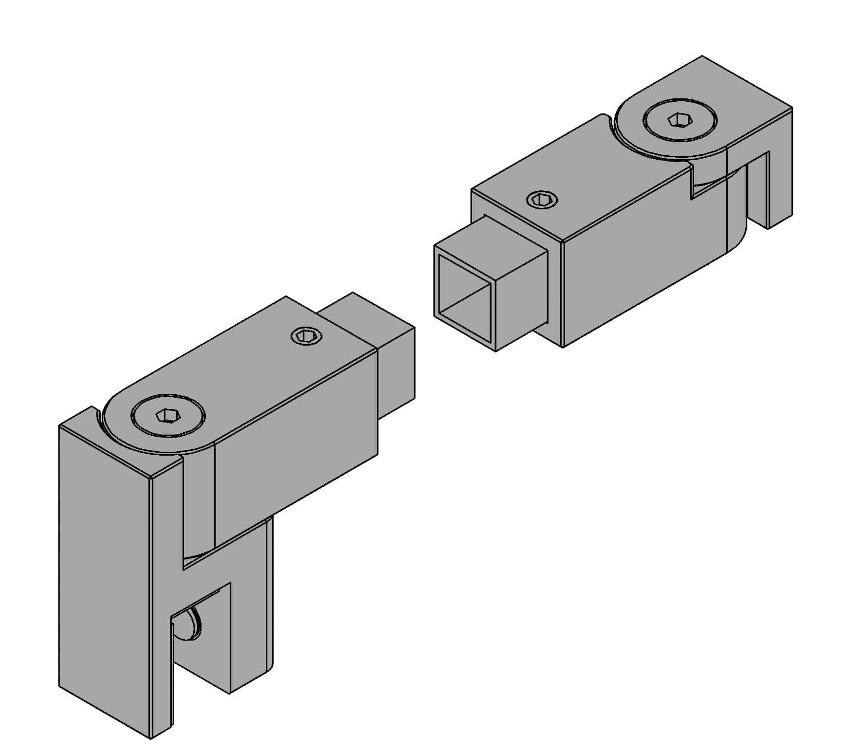 The Square 12 reinforcement bar set is used to connect a fixed glass side panel to a wall. The glass connector is clamped onto the upper glass edge and, like the wall connector, is freely adjustable in angle.