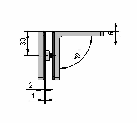 The 90° glass-wall Santos HD angle connectors connect glass side panels to a fixed wall. Simple glass drill holes are required for this.