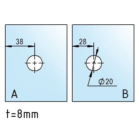 The 90° glass-glass Santos angle connectors make it possible to create a 90° glass corner connection, for example for a glass shower in a U-shape. Simple production of the glass as only glass drill holes are required.