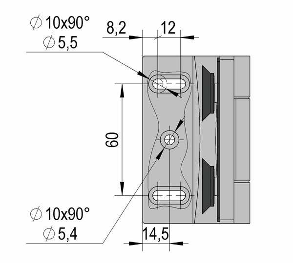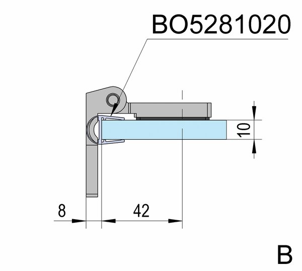 The hinge has a flush, adjustable glass fastening, which makes it easy to clean the glass. All screw fittings on the hinge are concealed so that nothing detracts from the high-quality look. The angular design is classic and timeless. The sealing profiles can be guided through the hinge. No glass cut-outs are required for installation, only countersunk glass drill holes.