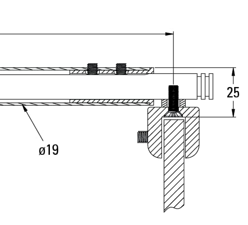 The set is used to connect a fixed glass side panel to a wall. There is no need to use a saw, as the reinforcement bar is freely adjustable over a wide range of lengths.